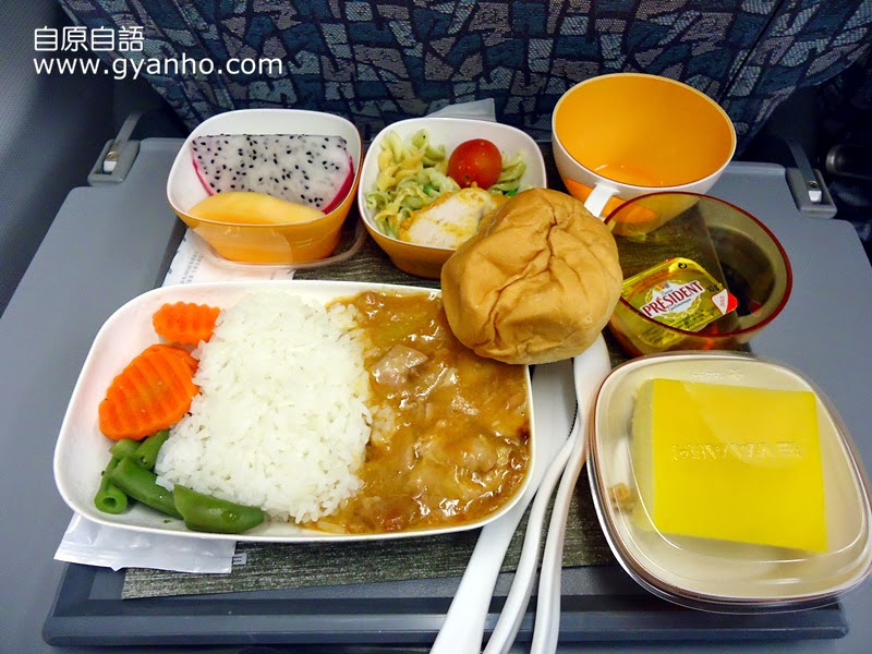 前菜主食甜點水果都一次過呈上來,雖然味道和水準還好,可是卻相當的豐富呢!有雞肉飯,意大利面,牛油&麵包,還有我最喜歡的cheese cake!衷心覺得正規航空就是不一樣。。。